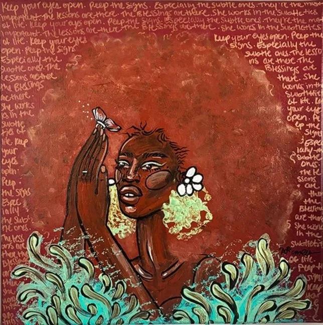 Melanie Royster’s expressive, layered works invite viewers into a journey of growth, vulnerability, and the transformative power of Black love. Through color, form, and emotion, the exhibition centers love as both a personal and collective act of resilience and restoration.