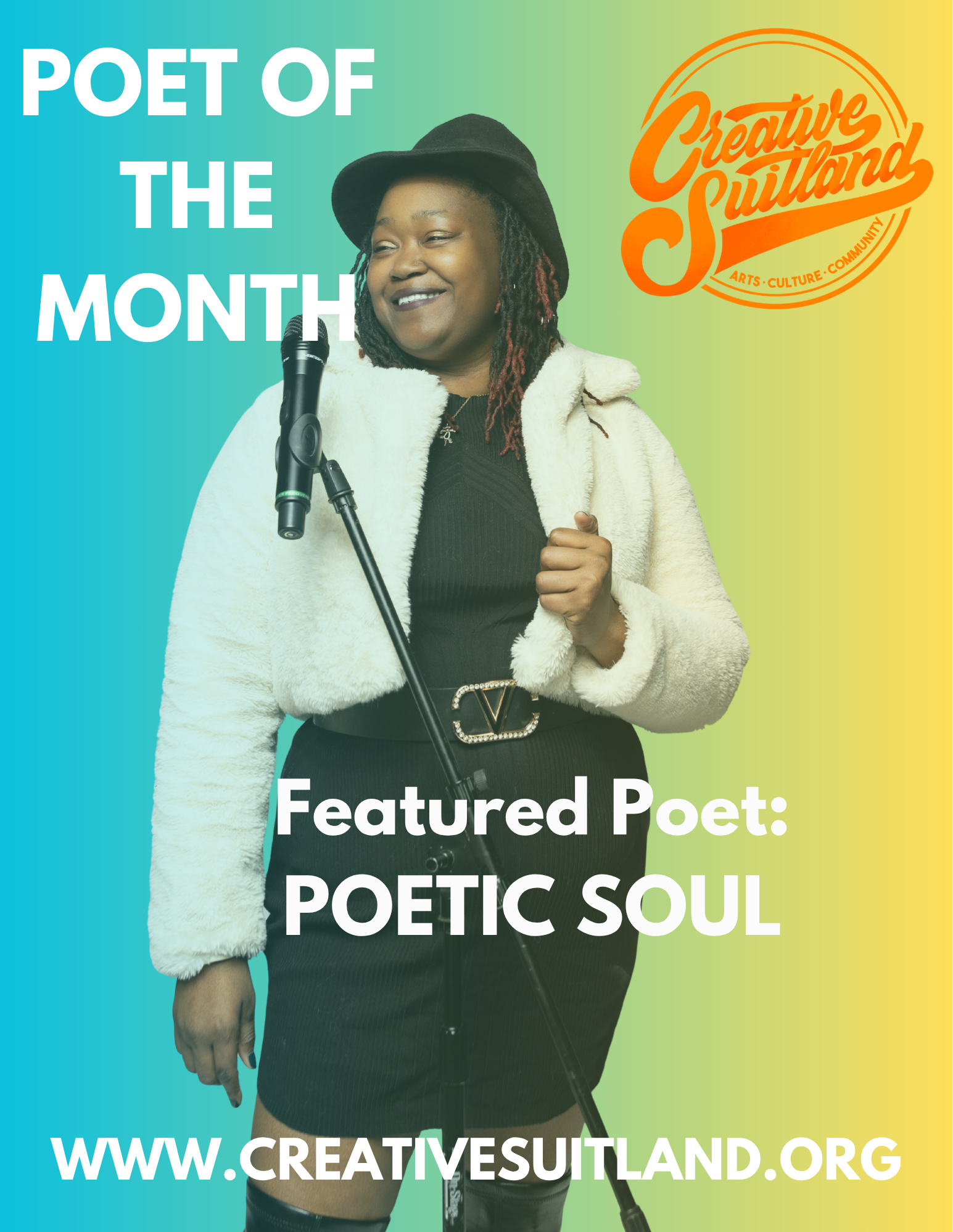 Poetic Soul is a DMV poet, educator, and author. She aspires to write poetry that inspires thoughts of love, inner peace, and hope. She has been featured at events such as the LA County Fair Poetry Festival, Artomatic Festival, Art All Night, and the WBL Festival performance at the Kennedy Center. She has performed at open mics throughout the DMV area, as well as in Orlando, Atlanta, and Texas. She currently hosts 2 Open Mics in the DMV. She prides herself on being a mother and a lifelong learner. Having earned a Master's Degree in Educational Technology, she is now pursuing a doctoral degree. She wrote her first poetry book in 2022 and is working on her 2nd book and a poetry album, both of which will be released in 2026. She is also currently writing her first fiction novel titled Vixen and can't wait to share it with you all.